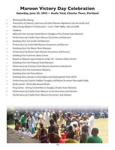 • Welcome from Acting Colonel Marcia Douglas of the Charles Town Maroons