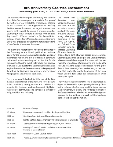 mang as the custodian of the stool. The stool is a sym- The event will also highlight the role of the Maroon In-